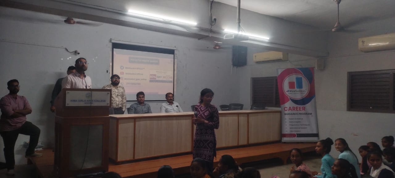 On August 09,2024 Nima Girls Arts College Gozaria arranged a special Orientation Programme for interaction of the girl-students with the experts from the Websankul Academy. Gandhinagar regarding how to succeed in the competitive exams in their life to come. The five experts of the academy including the Project Head Sujit sir, management head Lakhan sir, management manager Mahesh sir and the two faculties- Shailesh Sir and Hemant sir delivered about the different aspects of such competitive exams as UPSC, GPSC, GSSSB and the LRD and Talati examination before the students. All of them ensured of any type of support in the direction of the preparation for the competitive exams in future too. The zeal and enthusiasm of the students itself spoke volumes about their single-minded determination for the such examination.