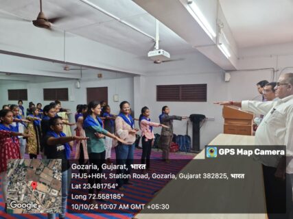 In Nima Girls Arts College, Gozaria affiliated with H.N.G.U., Patan as part of celebrating the Vikas saptah on October, 10,2024 the Vikas-pledge was taken up by the girl-volunteers of the college. In the second section of the programme Dr. Narendrabhai P. Prajapati, coordinator of the college Innovation Club delivered a lecture on the start-up activities specially meant for the students. Moreover, he stated students to extract benefits from the government policies meant for the start-up activities under auspices of the innovation club of the college under the direct cooperation of the district administration. In the said event thirty volunteering girl students of the college N.S.S unit along with eight college teachers enthusiastically participated.