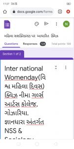 As part of the Knowledge Band in relation to the event of Inter national Women’s Day an on-line quiz competition and essay-competition were was held in NGAC, Gozaria March 09, 2021. In this 124 responses were collected. Relevant certificates were distributed to those getting more than 50% marks. Here it needs to be mentioned separately that all the questions of the said quiz were pertaining to the growing issue of women empowerment. The first three rankers of the essay competition were respectively Hiral Chhanaji Thakor, Nikitaben Babuji Thakor,Urmilaben B. Thakor. The college congratulated the winners. this programme got accomplished under the guidance of DR N.P.Prajapati and DR. V.M.Chauhan.