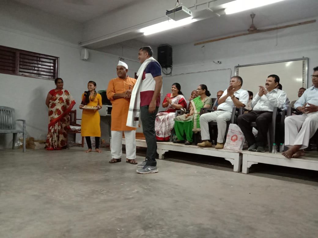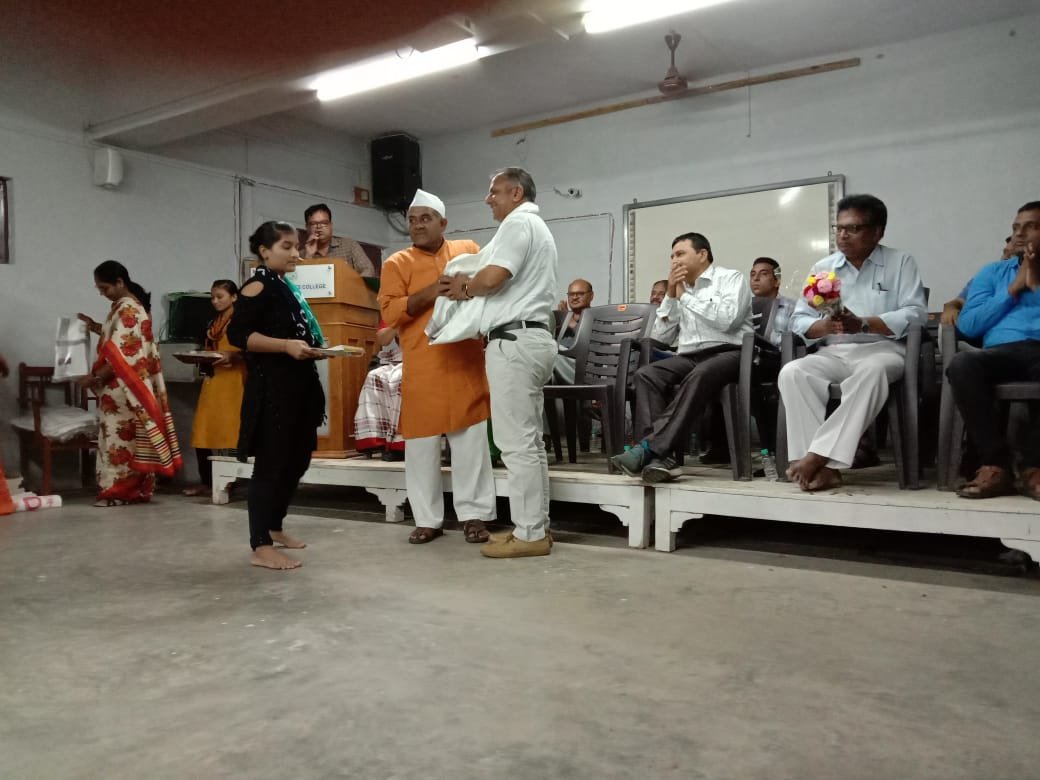 On July 25, 2019 a programme entitled ‘ Talk with Teachers’ was organized, as part of which thirteen invited principals of the nearby high schools and two principals of the two sister organizations under the umbrella of Shree Gozaria Kelavani Mandal and invited teachers from these schools were felicitated in NGAC, Gozaria. The students welcomed the guests with their dance performance. In his speech trustee and former principal of the nearby Langhnaj high school Shree J.N.Patel informed the gathering about the hardships faced by students because of which this college was established by the elders of the managing body. He invited the teachers and principals to construct such programmes of the welfare of the students at the core in which the energetic college staff contribute tremendously. During this programme the invited teachers and principals were felicitated with the souvenir of the recently accomplished ‘Ashta Dashabdi Samaroh’ of shree Gozaria Kelavani Mandal as well as bouquet and shawls. In this programme the principals of the nearby villages such as Parsa, Boru, Mokhasan,Meu , Langhnaj, Kharna and Samau along with both the schools of Gozaria, graced the function. Shree Anilbhai Raval, shree P.S.Patel and Shree Sanjaybhai Patel thanked the college family for this. Senior teacher of saldi high school Shree B.K.Darji revealed a desire to tell their students to take advantages of the learned college staff in their journey of higher education. This entire programme was anchored by DR Tushar Pandya and the vote of thanks was expressed by DR T.D.Raval. At the end of the programme all the invited guests and the college family took lunch together and left the campus with a sense of intellectual satisfaction.
