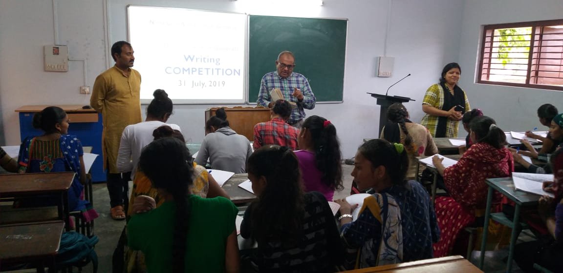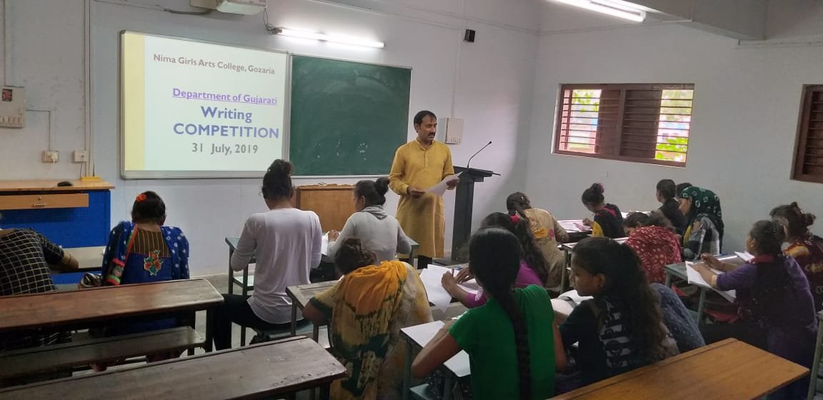 On July 31,2019 in honour of the immortal men of Gujarati letters to keep their contribution in constant memory, Department of Gujarati , NGAC, Gozaria applied a very unique idea of arranging a writing competition for developing linguistic propriety for the students in general . The only purpose of this programme is to develop linguistic awareness among the girl-students representing the rural background. The students were examined by the department of Gujarati.